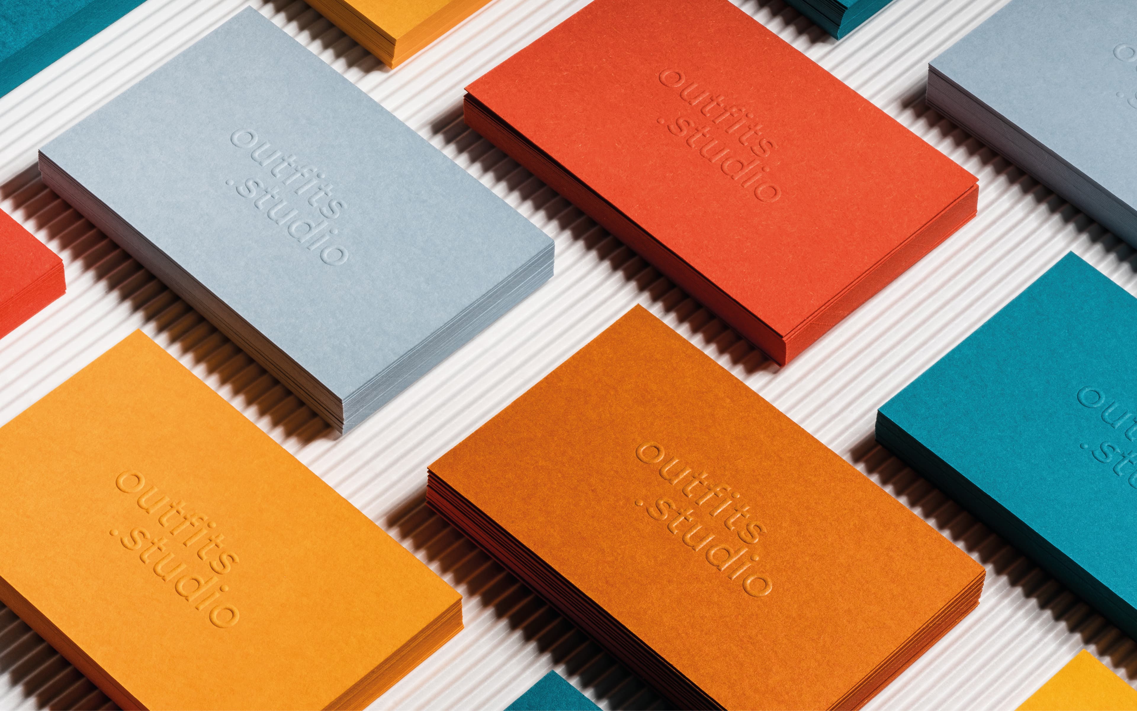 In order to best support their universe and the variety of their portfolio,, we proposed a very enriched colored palette, equally serving communication tools to categorize the multiple headings. The logo, simple and compact, highlights the typographic symmetry of start and ending of o utfits and studi o, all of this being built on the alignement of vertical letter barrels.