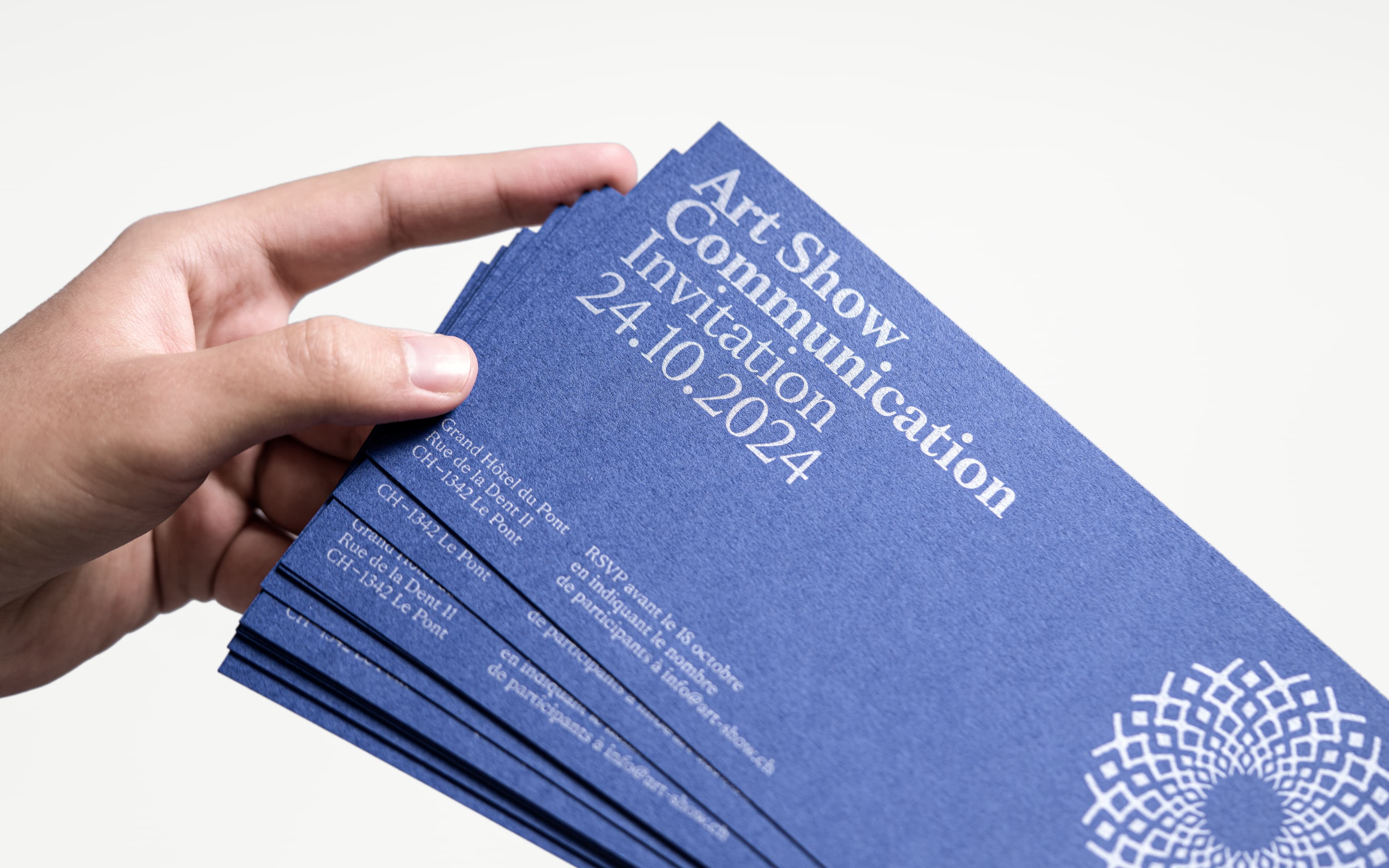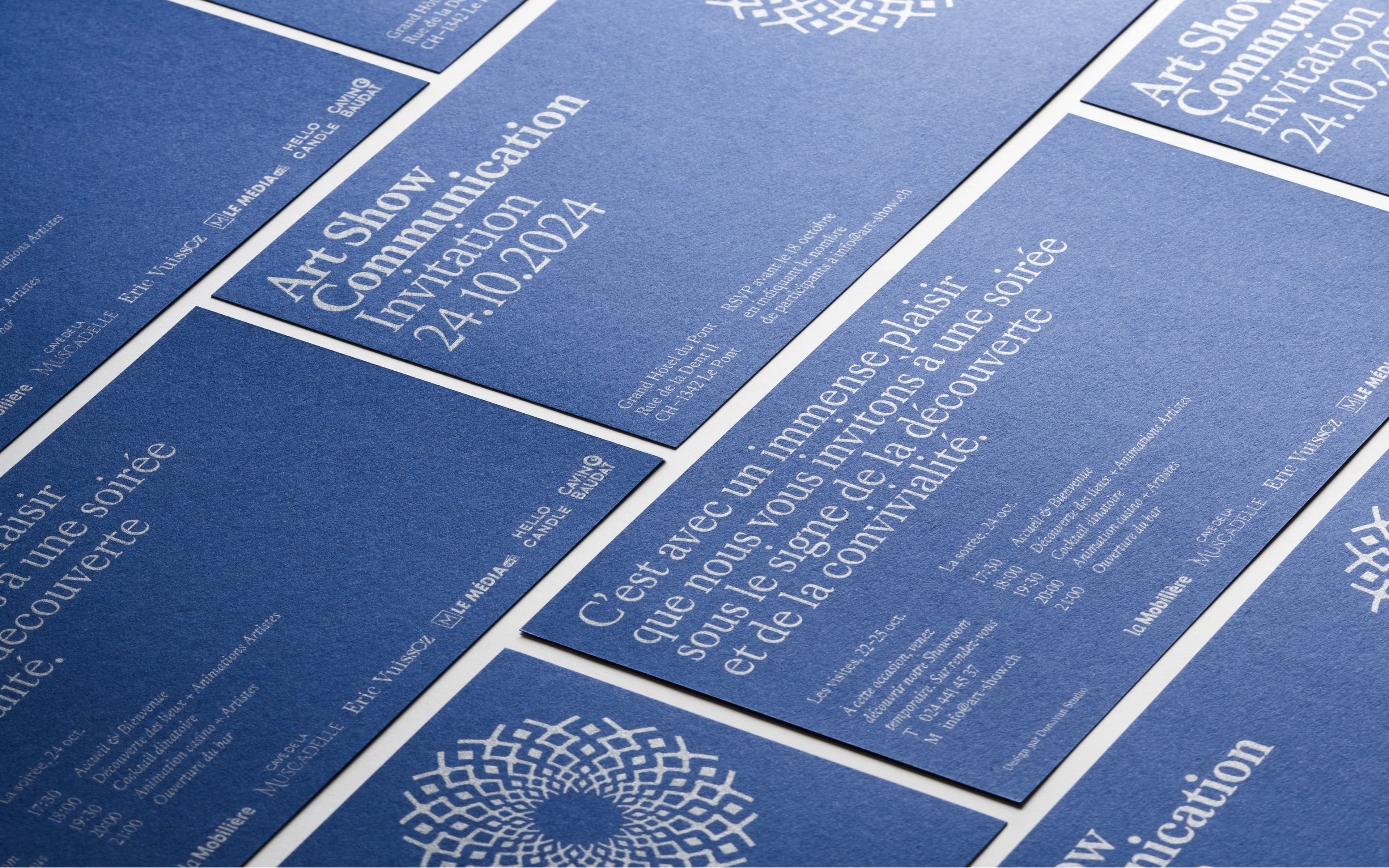 Art Show Communication is an event agency specializing in event design, management, and organization. It offers services in event management, artist booking, and lighting decoration. We had the pleasure of designing this elegant and refined invitation to celebrate the team and their achievements. The event was a true celebration, featuring artists, a casino, drinks, food, and more. The invitation’s design, through its colors and composition, remains closely aligned with the agency’s visual identity, ensuring both consistency and sophistication.